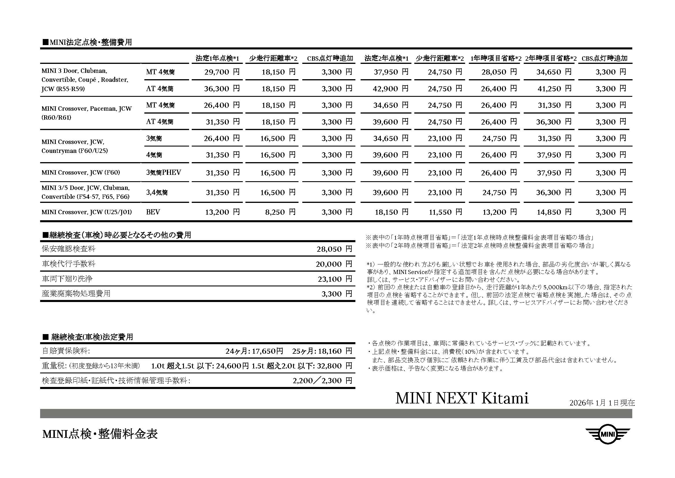 ※点検整備料金表の詳細については、サービス・アドバイザーにお問い合わせください。